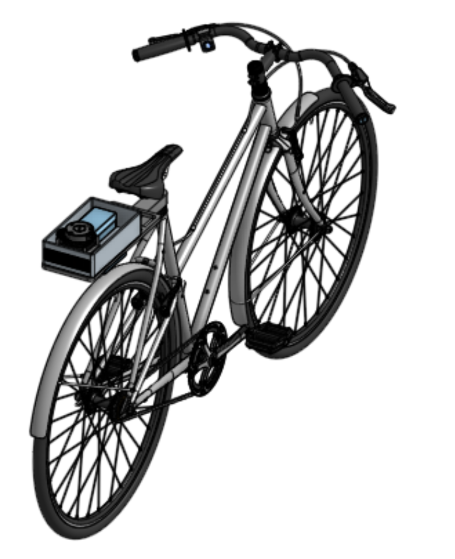 The initial mechanical design consists of three mounts: the main electrical enclosure, the switch mount, and the haptic mounts. The enclosure is positioned at the rear of the bike on a bike rack, securely housing the battery, lidar, LED, Raspberry Pi, motor controllers, and power converters. The switch mount is affixed near the left handlebar, adjacent to the brake lever for convenient access while riding. The haptic mounts are installed on the inner sides of the handlebar tube.